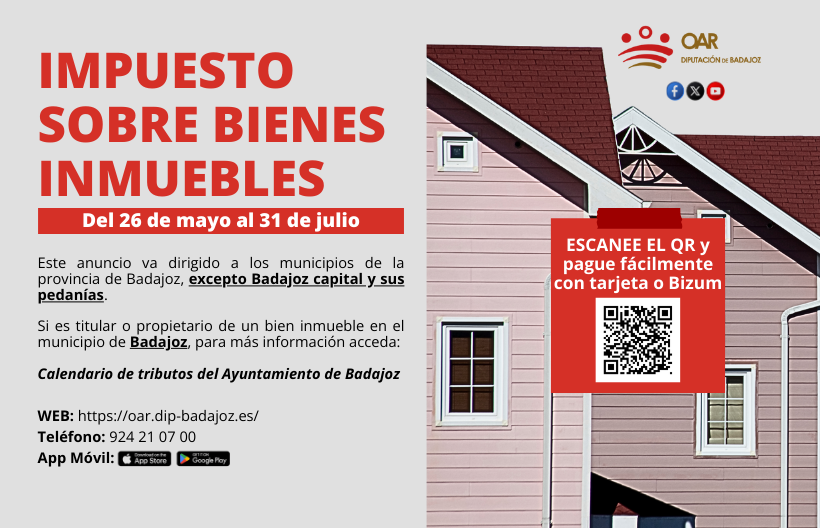 Para obtener más información, los ciudadanos pueden consultar la web del OAR, utilizar la aplicación móvil o contactar con el Centro de Atención Telefónica en el número 924 210 700, de lunes a viernes, de 9:00 a 14:00 horas. Asimismo, pueden acudir a cualquiera de nuestras 17 oficinas en la provincia, previa solicitud de cita a través de la web, del teléfono de atención 924 210 700 o de la App.