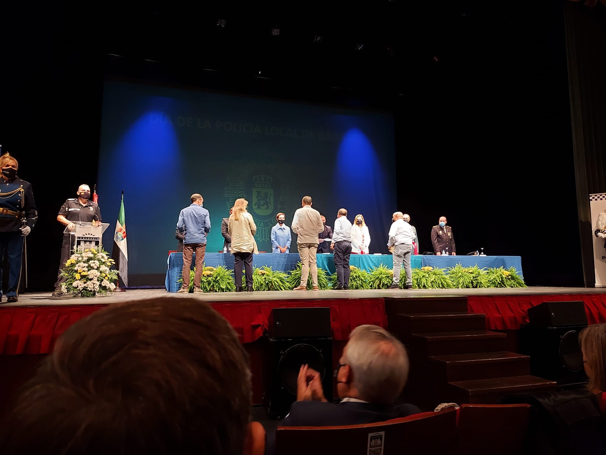 En un acto solemne celebrado el pasado miércoles, día 15, en el Teatro López de Ayala de Badajoz, con motivo de la celebración de su día, la Policía Local de la ciudad ha distinguido al jefe de sección de Sanciones No tributarias de nuestro Organismo, Francisco Javier Merino Palomo, así como al jefe de negociado de Recaudación Ejecutiva, Juan José Rodríguez Jaramillo, por su colaboración y coordinación con el cuerpo de la Policía Local de Badajoz, redundando su labor en una mayor eficacia en la prestación de servicios.