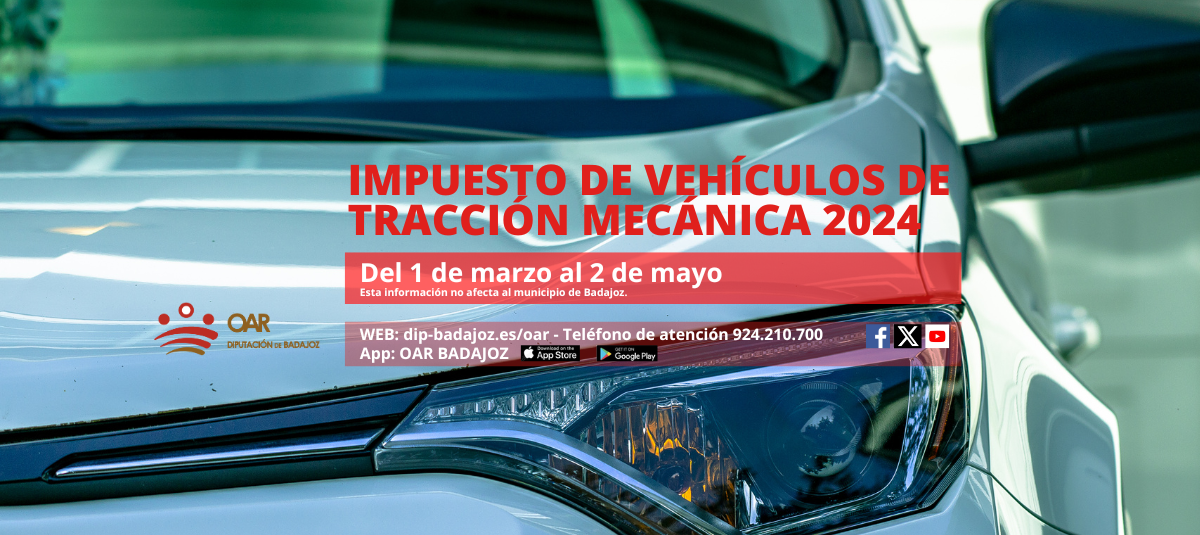 El Organismo Autónomo de Recaudación de la Diputación de Badajoz, OAR, inicia el 1 de marzo el periodo de pago voluntario del impuesto de vehículos de tracción mecánica – IVTM, conocido popularmente como impuesto de circulación.