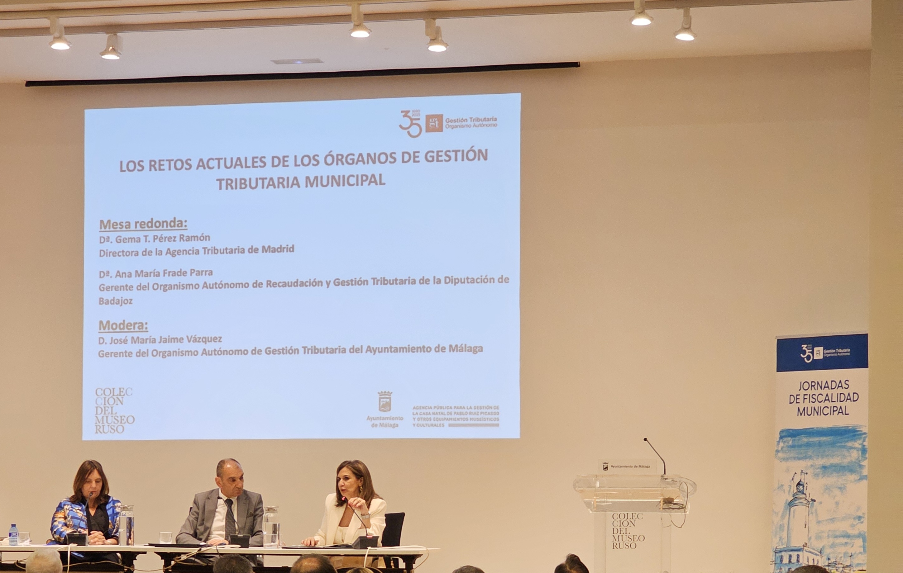 Bajo el título “Los retos actuales de los órganos de gestión tributaria local”, la mesa contó también con la participación de Gema T. Pérez Ramón, directora de la Agencia Tributaria de Madrid, y estuvo moderada por José María Jaime Vázquez, gerente del Organismo Autónomo de Gestión Tributaria del Ayuntamiento de Málaga.