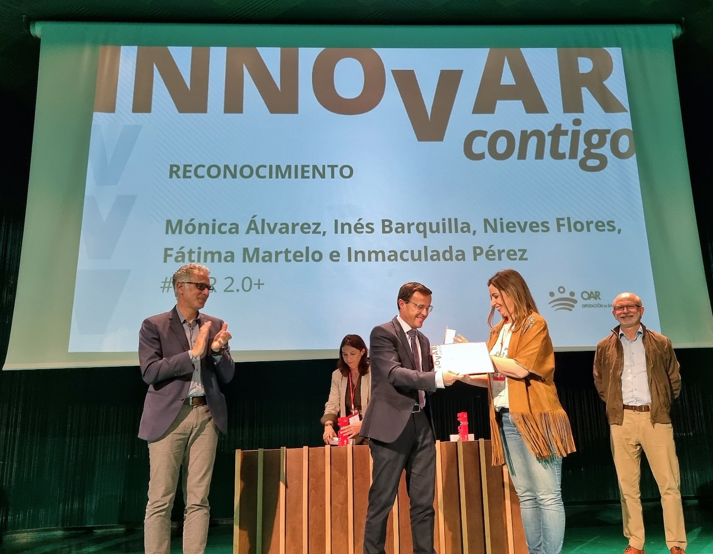 El premio a la mejor propuesta innovadora, se ha entregado al equipo de trabajadoras del OAR, compuesto por Mónica Álvarez, Inés Barquilla, Nieves Flores, Fátima Martelo e Inmaculada Pérez, por su propuesta titulada #OAR 2.0+.