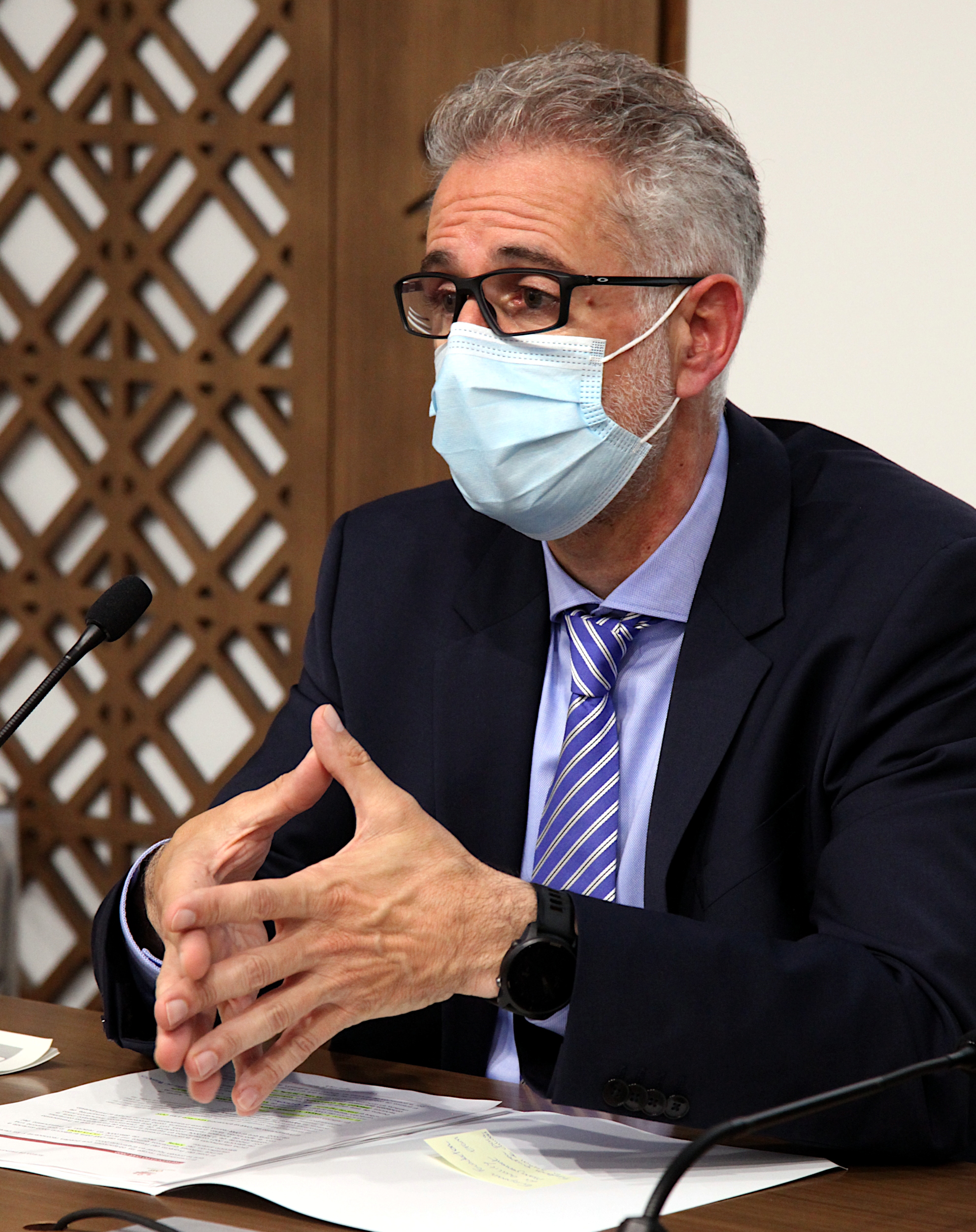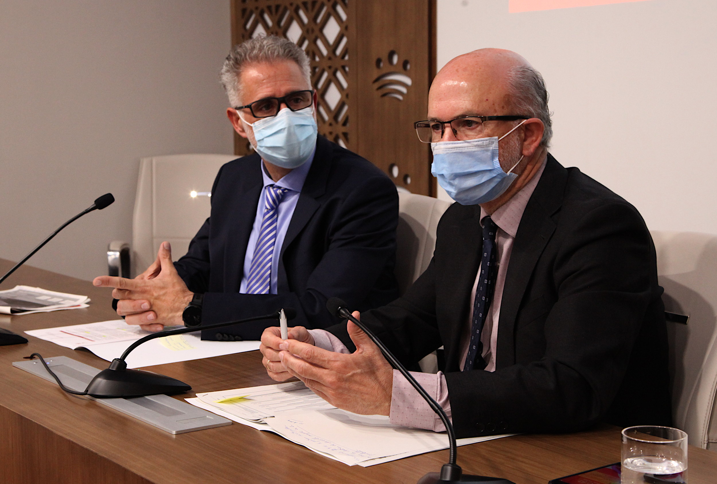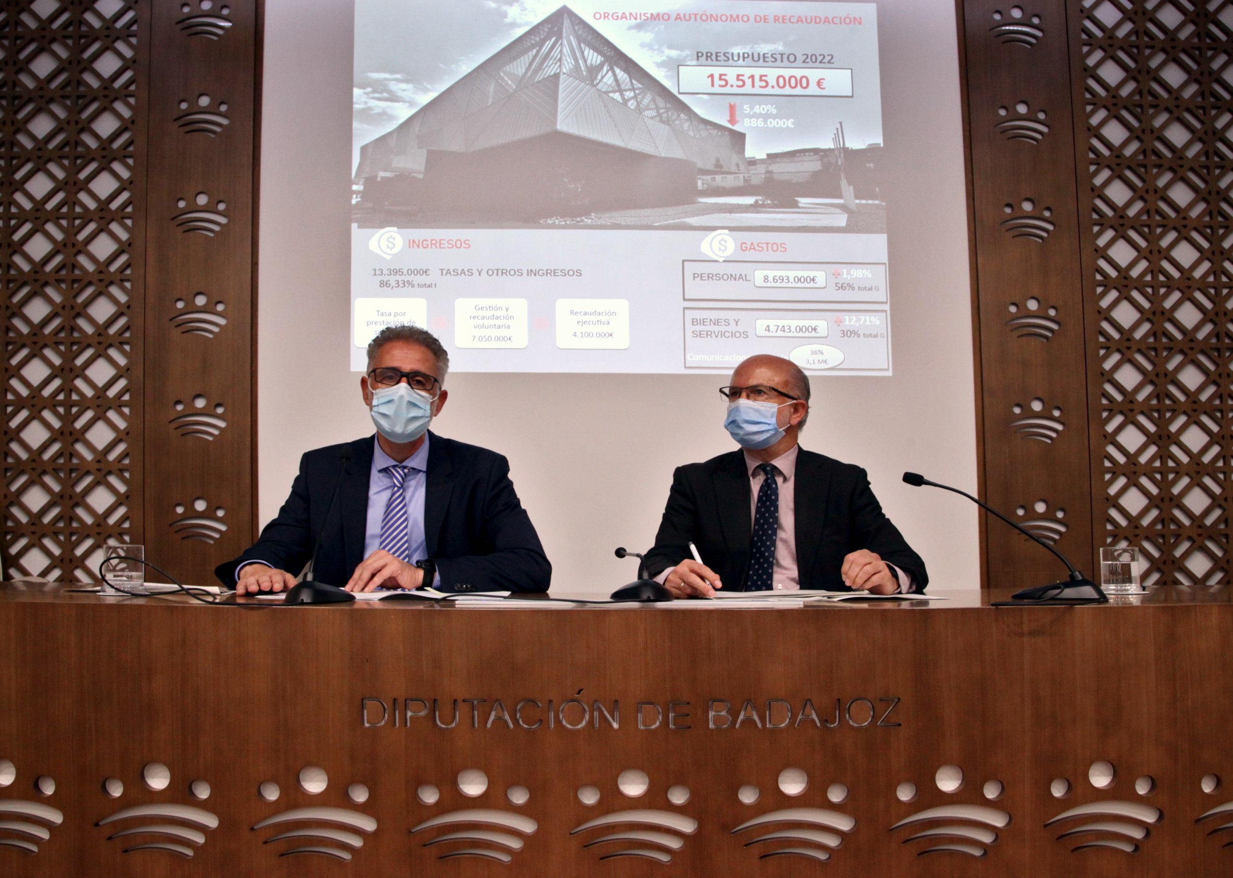 El diputado delegado del Organismo Autónomo de Recaudación, Saturnino Alcázar, acompañado por el gerente, Manuel Cordero, presentó hoy los principales proyectos del OAR para el año 2022.