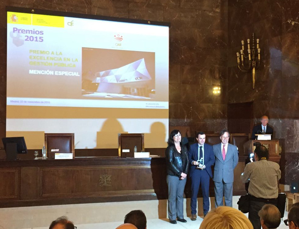El Organismo Autónomo de recaudación de la Diputación de Badajoz ha recibido una mención especial en los premios a la excelencia en la gestión pública 2015. Este premio lo otorga la Agencia Española de Evaluación de la Calidad dependiente del Ministerio de Hacienda y Función Pública y premia la trayectoria de las Administraciones Excelentes en la prestación de servicios públicos que mantiene en el tiempo resultados sobresalientes.