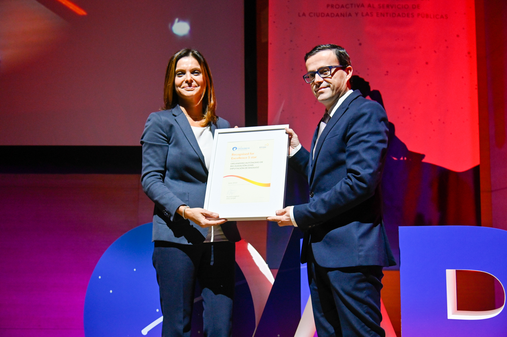 El Presidente de la Diputación de Badajoz, don Miguel Ángel Gallardo Miranda, recibió en las VI Jornadas Municipales celebradas ayer 19 de noviembre, en Badajoz, el certificado correspondiente al Sello de Excelencia Europea EFQM 500+, el máximo nivel de reconocimiento que concede el Club Excelencia en Gestión, como representante oficial en España de la Fundación Europea para la Gestión de la Calidad (EFQM). De acuerdo con los datos del Club Excelencia en Gestión, el Organismo Autónomo de Recaudación de la Diputación de Badajoz es una de las Administraciones públicas que actualmente cuentan con un Sello de Excelencia Europea EFQM 500+.