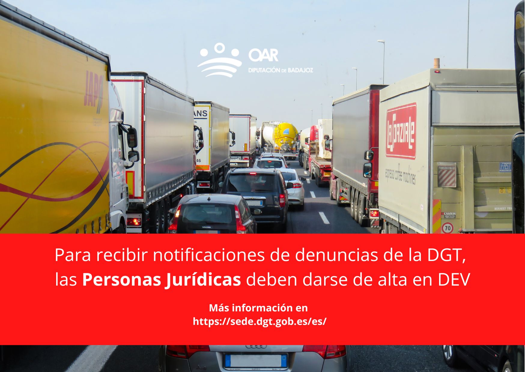 Tomando como base la obligatoriedad legal establecida para las personas jurídicas de relacionarse de forma electrónica con la Administración, las personas jurídicas (Administraciones Públicas, Sociedades mercantiles, Sociedades civiles y ONGs, Asociaciones, Empresas públicas y otras) deberán darse de alta en la Dirección Electrónica Vial – DEV, para recibir las notificaciones relacionadas con el procedimiento sancionador de tráfico, tanto competencia de la Dirección General de Tráfico, como de cualquier otro organismo que tramite multas de tráfico, incluido el OAR.