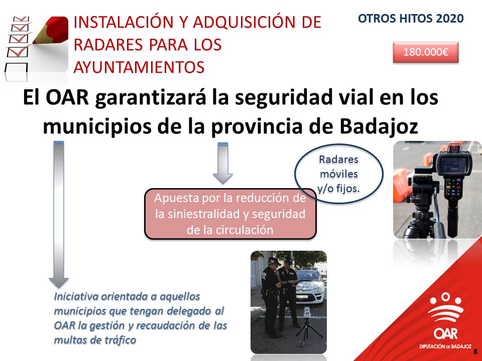 Se invertirán 180.000 euros para continuar con el compromiso del OAR en la adquisición e instalación de radares con la finalidad de garantizar la seguridad vial de los municipios de la provincia.