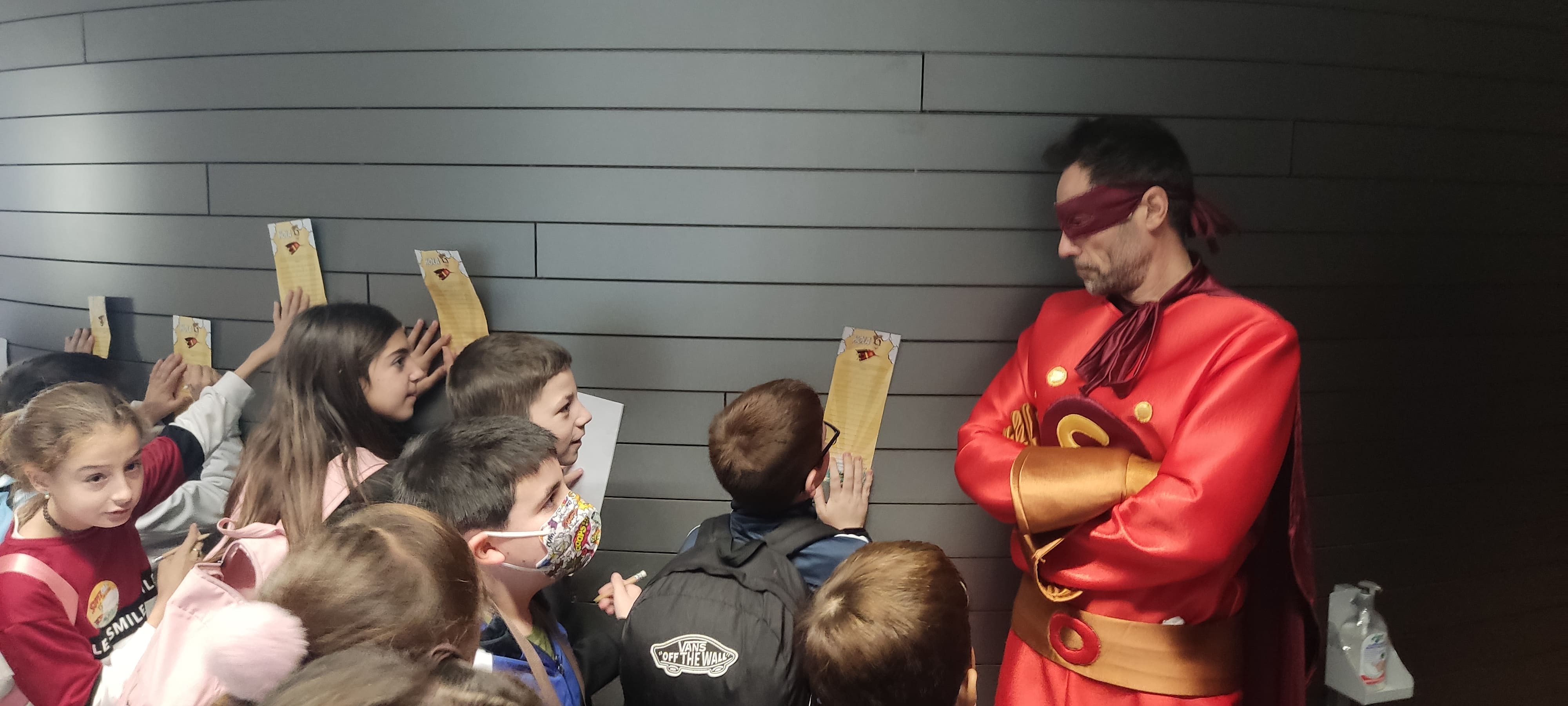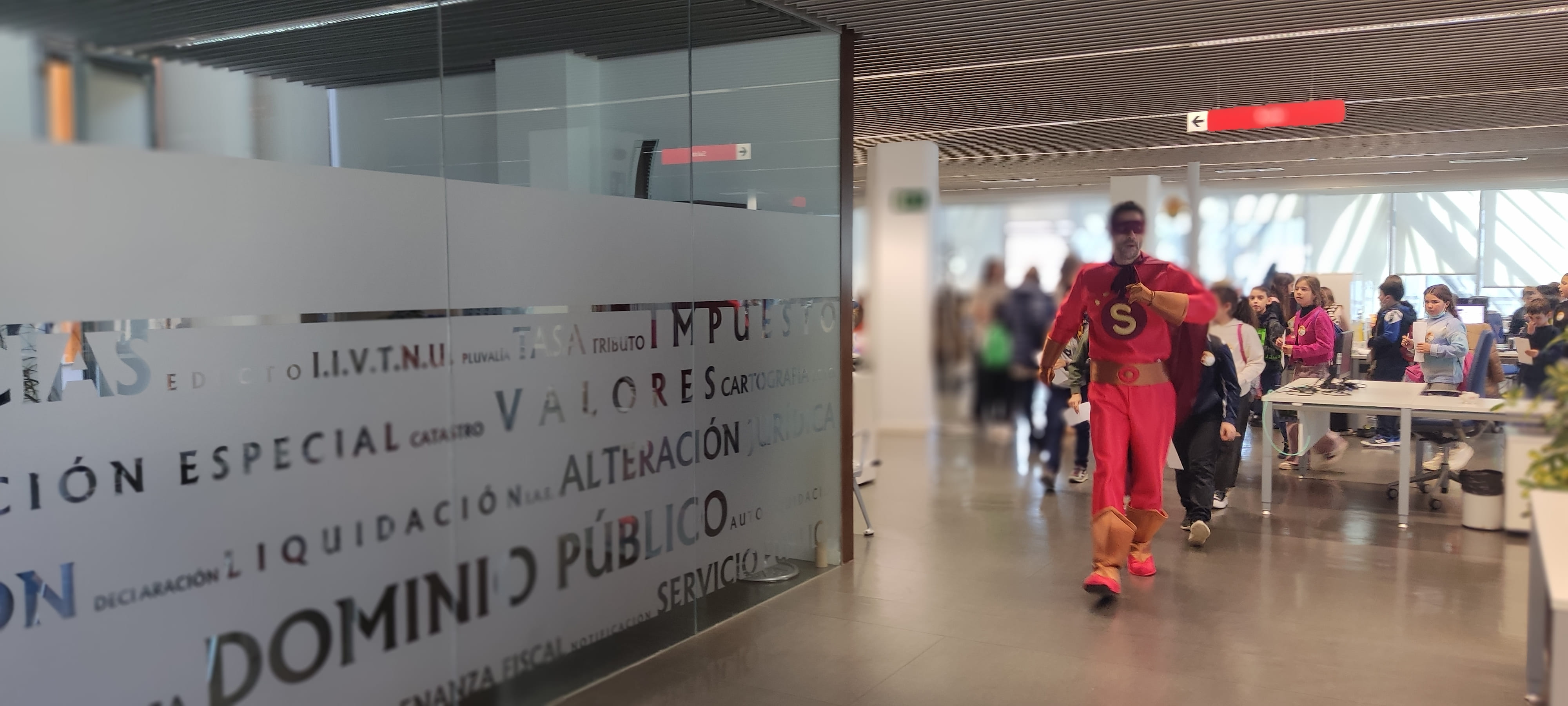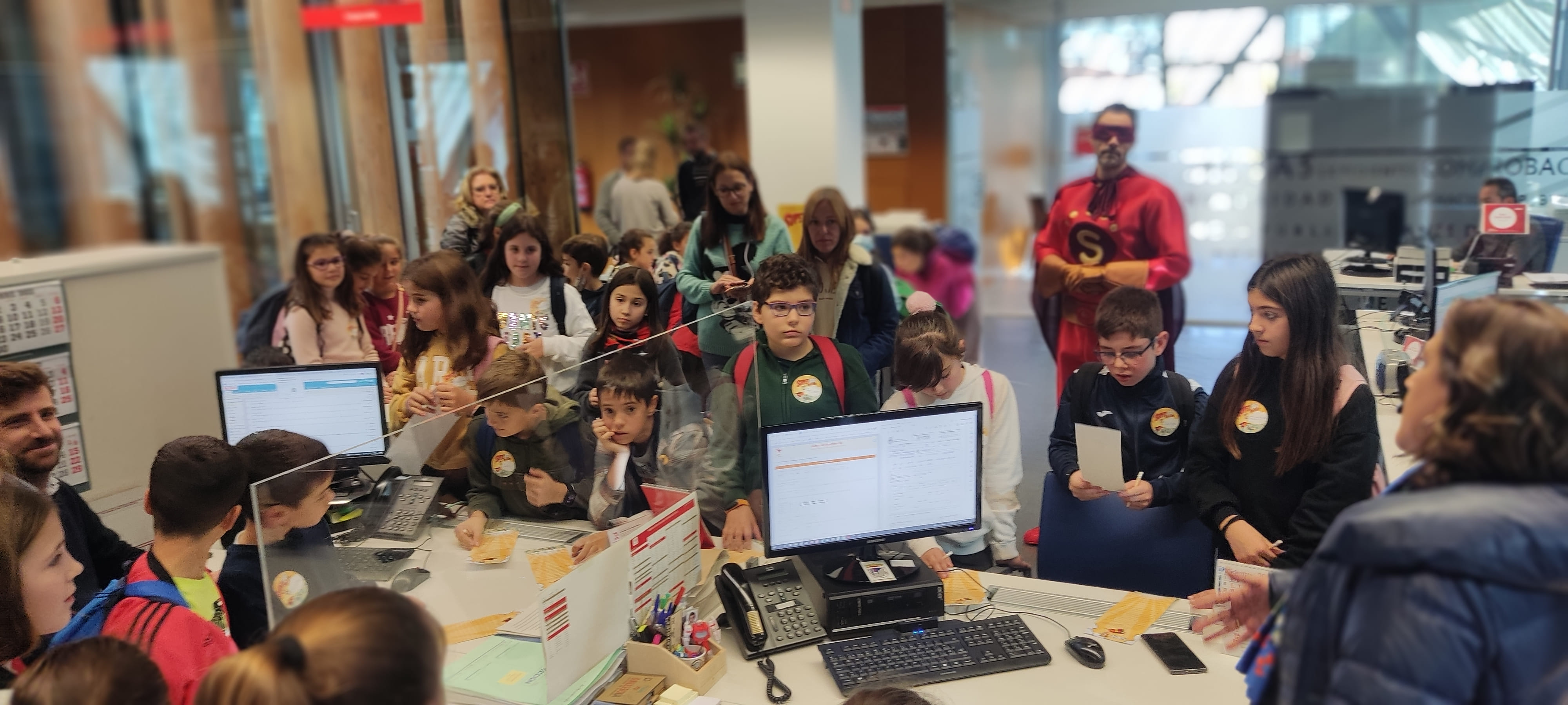 Durante la visitan conocieron a SuperOAR, quien les enseñó el edificio y explicó el funcionamiento de los distintos departamentos, acercándolos al sistema tributario.