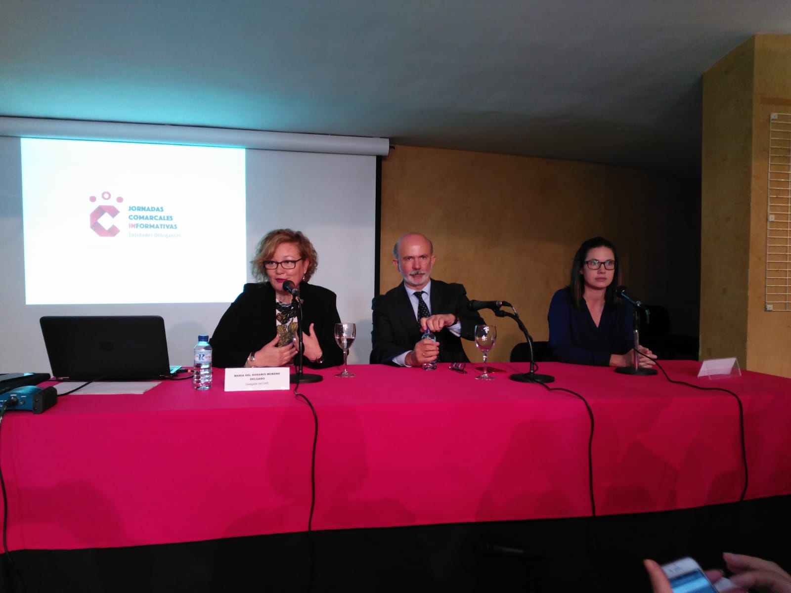 La Vicepresidenta del OAR, Mª del Rosario Moreno junto con el Gerente del OAR, Manuel Cordero y la Concejala del Ayuntamiento de Montijo, Rita Muñoz, se encargaron de abrir la Jornada.
