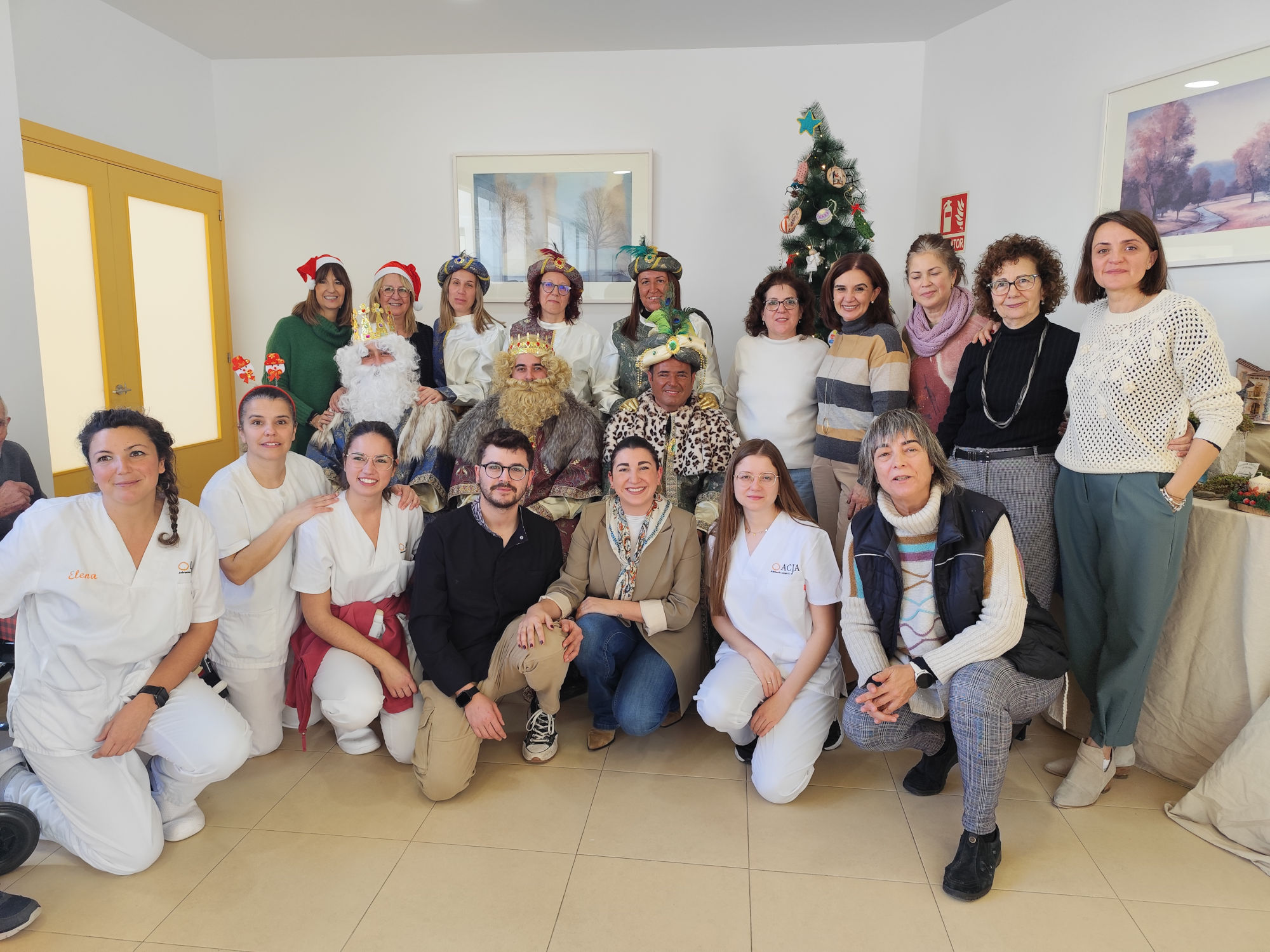 La iniciativa logró reunir a 54 padrinos de la Diputación de Badajoz y del Organismo Autónomo de Recaudación (OAR), que se volcaron para que los 27 residentes disfrutaran de dos regalos personalizados cada uno. La jornada estuvo presidida por la Diputada del Organismo y Alcaldesa del municipio María Concepción López López y la Gerente del OAR Ana Mª Frade Parra, y contó con una sorpresa muy especial: la visita de los Reyes Magos y sus pajes, representados por seis compañeros de los Servicios Centrales, que llevaron la magia de la Navidad y alegría a los residentes.
