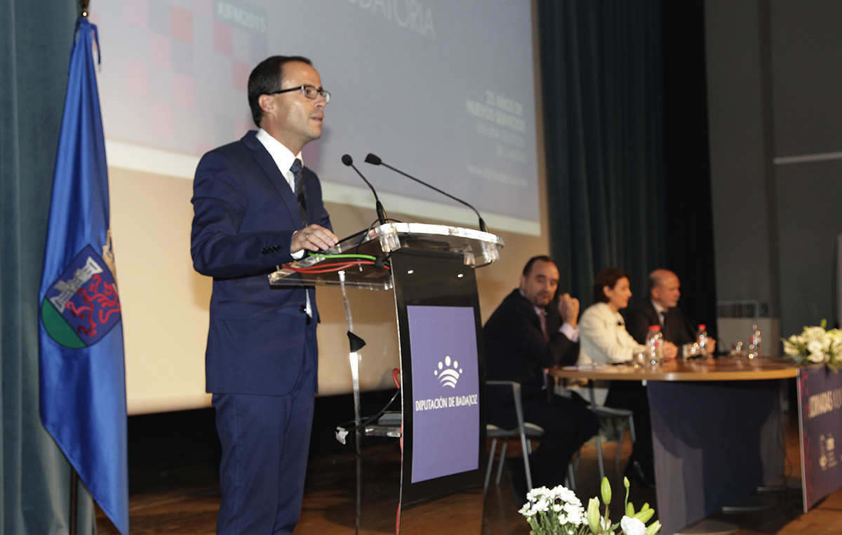 Felicitó a los doscientos trabajadores que operan en la sede central de Badajoz y en las dieciséis oficinas repartidas por toda la provincia. Defendió, asimismo, el papel de diputaciones como la de Badajoz 'que es una institución muy profesionalizada que funciona con economía de escala'.