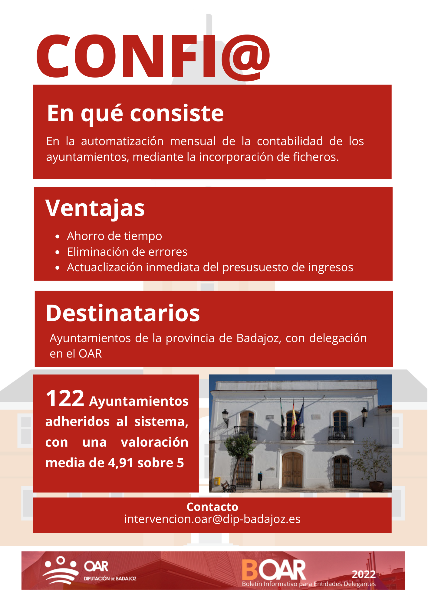 CONFÍ@ consiste en la automatización mensual de la contabilidad de los ayuntamientos, mediante la incorporación de ficheros.