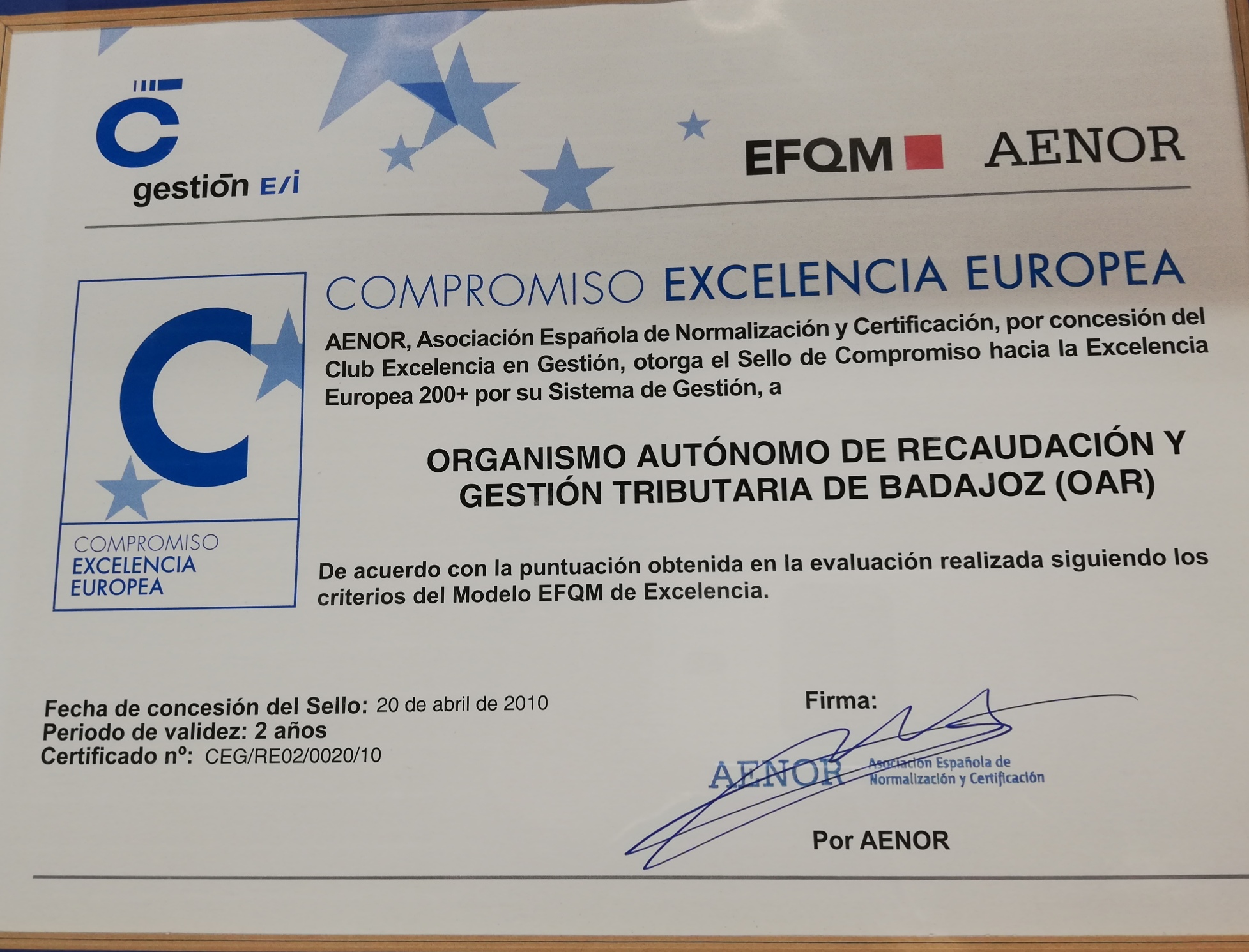 - Distinción por la especial colaboración con la Universidad Facultad de Ciencias, Económicas y Empresariales