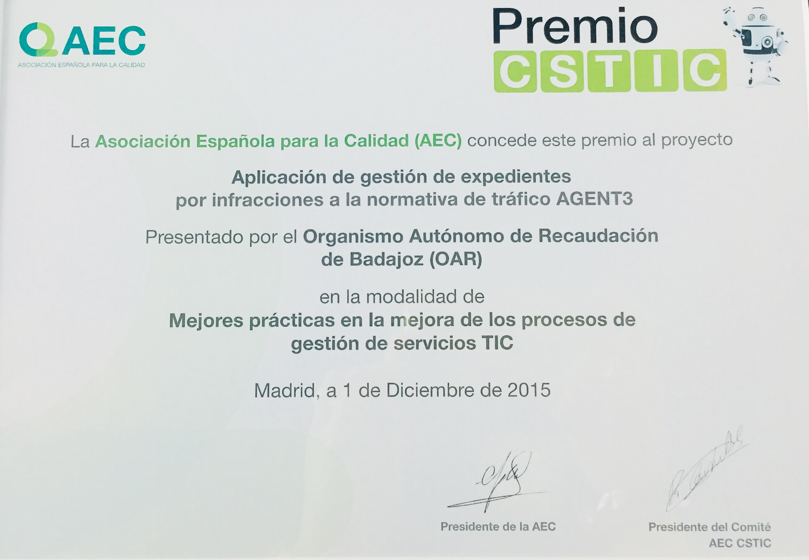 - Premio a los Servicios Electrónicos de Cooperación Interadministrativa (TECNIMAP)